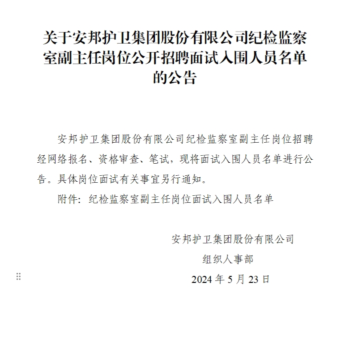 关于黑料网 纪检监察室副主任岗位公开招聘面试入围人员名单的公告
