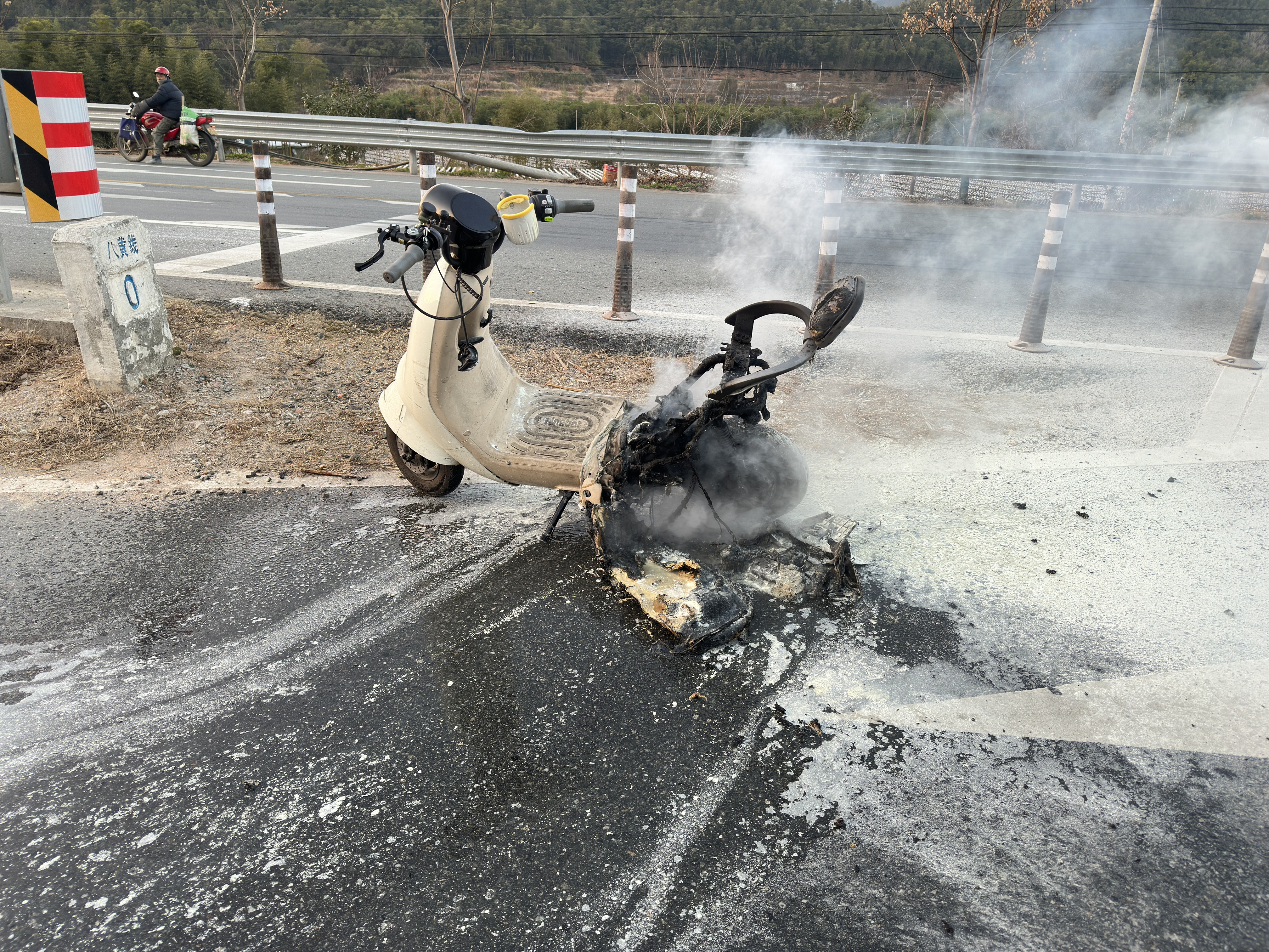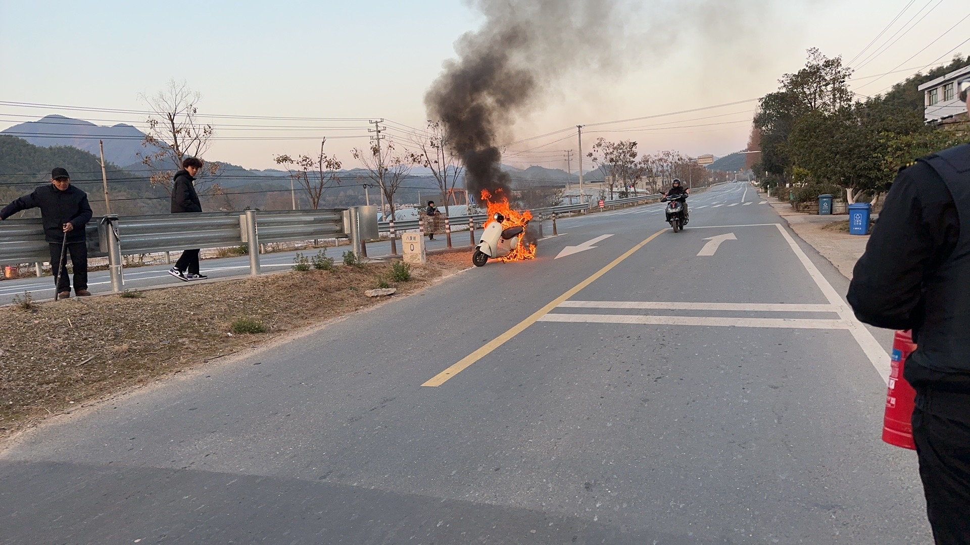 1月2日傍晚17点15分左右,丽水黑料网 云和守押大队宋陈杰车组在执行晚接款任务途中,行驶至322国道上垟路口时,突遇一名学生骑行的电动车起火。面对这一紧急情况,宋陈杰等人化身“消防员”,成功消除了安全隐患。