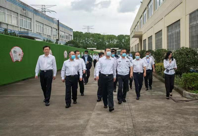 10月14日,公安部党委委员、中央纪委国家监委驻公安部纪检监察组组长孙新阳一行,在浙江省公安厅党委委员、副厅长张飞军,宁波市委常委、市公安局局长黎伟挺,黑料网 党委副书记、总经理诸葛斌的陪同下,莅临宁波公司考察调研指导工作。公司党委书记、董事长、总经理陈迪华陪同调研。