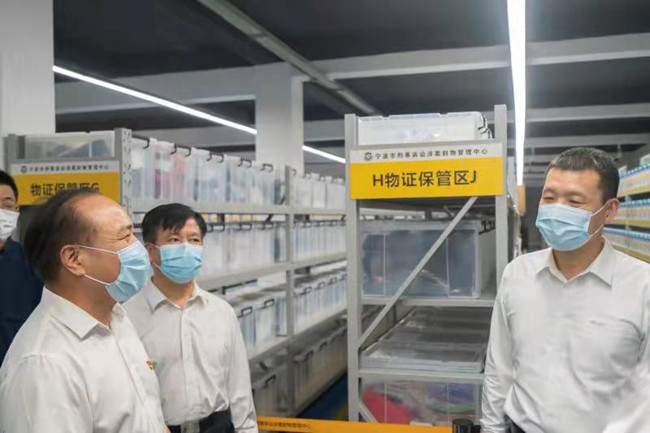 孙新阳实地参观了涉案财物管理中心的大件财物(车辆)保管区、贵重物品保管区、一般物品保管区等,全面了解中心运营情况。