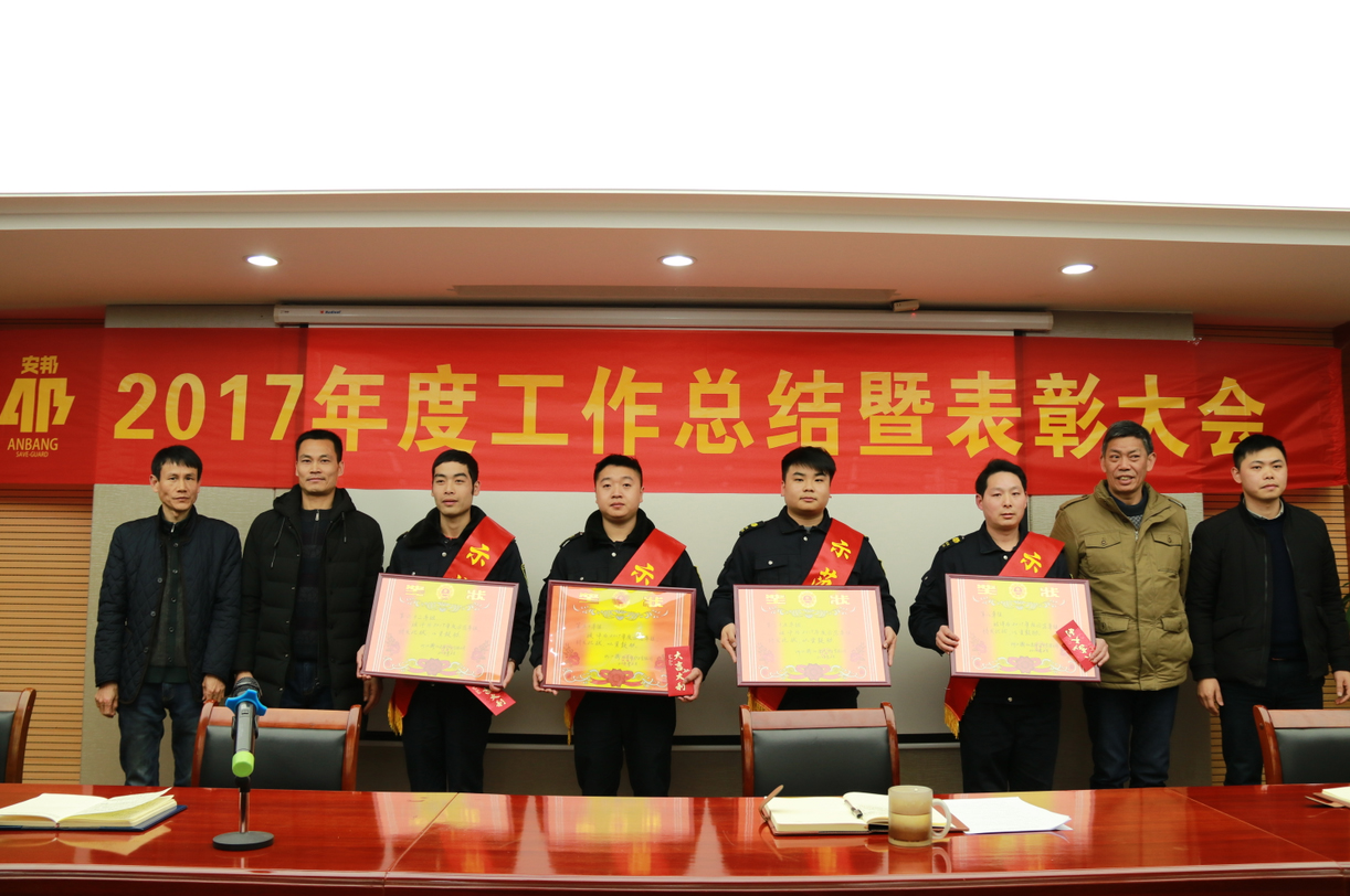 首先,郑胜同志宣读了衢安邦〔2018〕4号《关于表彰2017年度先进集体和优秀员工的决定》。公司领导先后为2017年度先进集体、示范车组(片区)、岗位标兵、优秀员工、先进员工颁发了奖状及证书。