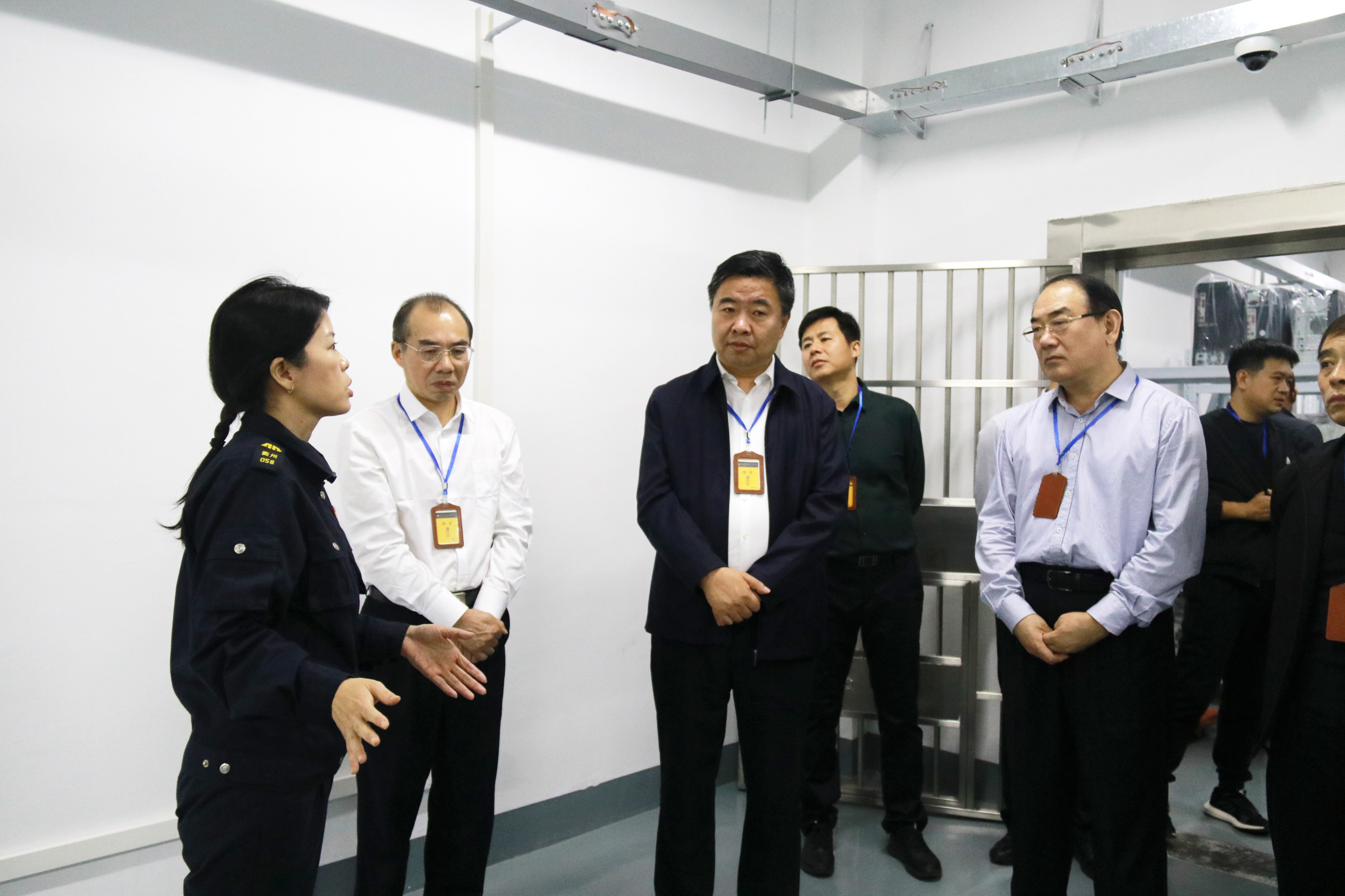 程蔚青一行全面视察了案管中心的功能区、保管区和设施设备,对科学化、智慧化涉案财物管理系统表示肯定和赞赏。