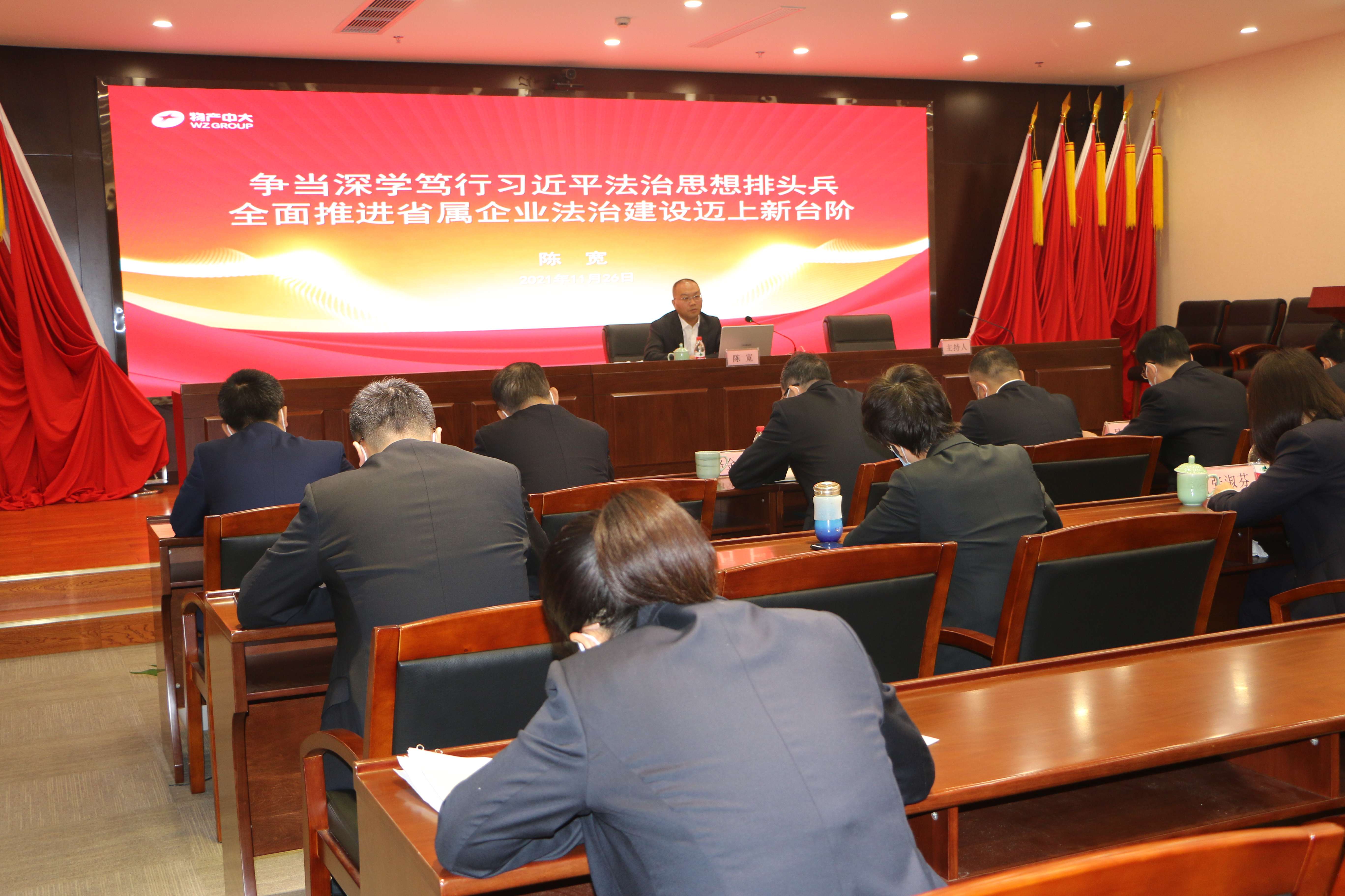 为切实把习近平法治思想贯彻落实到依法治企各项工作中,提升集团运用法治思维和法治方式深化改革发展和化解矛盾、维护稳定、应对风险能力,引导集团广大干部职工准确把握习近平法治思想的发展脉络,深刻领会习近平法治思想的重大意义,精准把握习近平法治思想的核心要求。按照省委“勇当笃学践行习近平法治思想排头兵”的精神,根据《省委依法治省办、省法学会关于印发<习近平法治思想集中宣讲安排>的通知》要求,结合《集团2021 -2022年度法治宣传教育专项活动方案》。11月26日上午,集团举办了习近平法治思想“进国企”宣讲活动暨第十五期“黑料网 大讲堂”,邀请浙江省学习贯彻习近平法治思想宣讲团成员,物产中大集团党委委员、副总经理、总法律顾问,浙江省行为科学学会副会长,浙大管理学院MBA校友导师陈宽作主题为“争当深学笃行习近平法治思想排头兵 全面推进省属企业法治建设迈上新台阶”的精彩讲座,集团领导班子出席会议,集团党委委员、纪委书记、总法律顾问卢卫东主持会议。