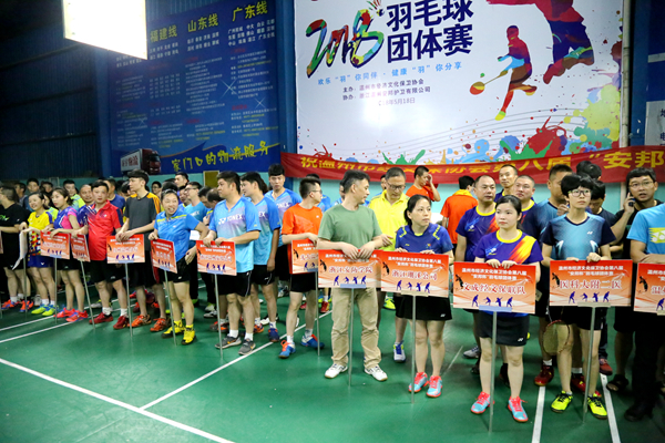 5月18日,由温州市公安局经文保协会主办,公司协办的“安邦杯”羽毛球比赛在友谊羽毛球馆拉开了帷幕,来自全市银行、学校、县区经文保协会的41个代表团共计240余位选手参加了本次比赛。