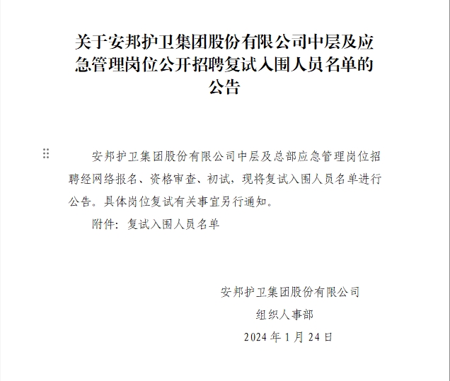 关于黑料网 中层及应急管理岗位公开招聘复试入围人员名单的公告