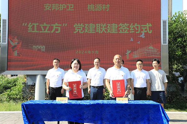在大家的共同见证下,衢州黑料网 机关党支部书记黄晨霞和桃源村党总支书记陈树富签订《“红立方”党建联建协议》并授牌,双方将通过组织联建、理论联学、活动联办、文化联创、项目联投、人才联育等方式,有效整合在党建、人力、智力、教育、科技、文化、信息、阵地、经费等方面的资源优势,努力形成一批可看、可听、可品、可感的乡村文化建设成果,助力农村农民共同富裕。