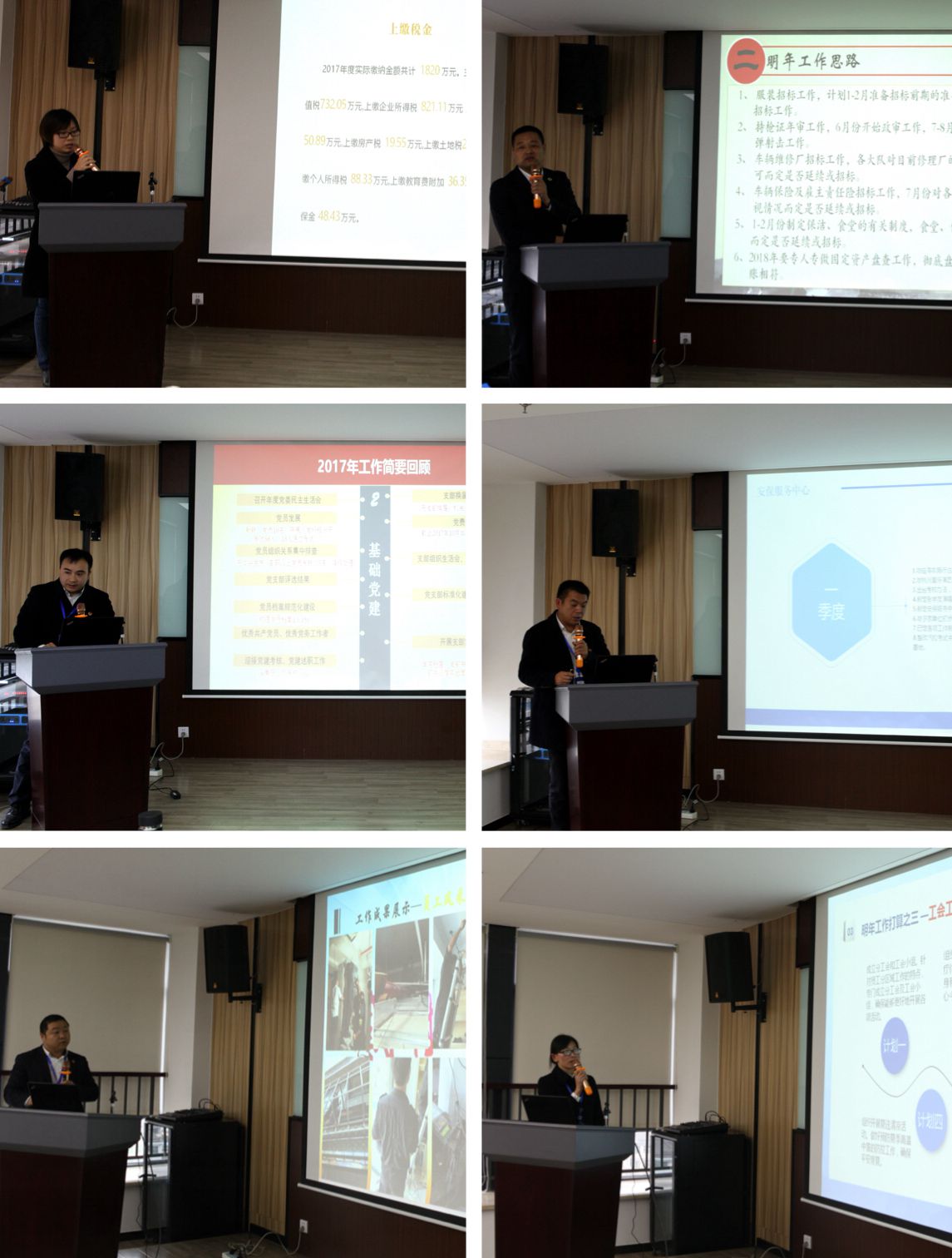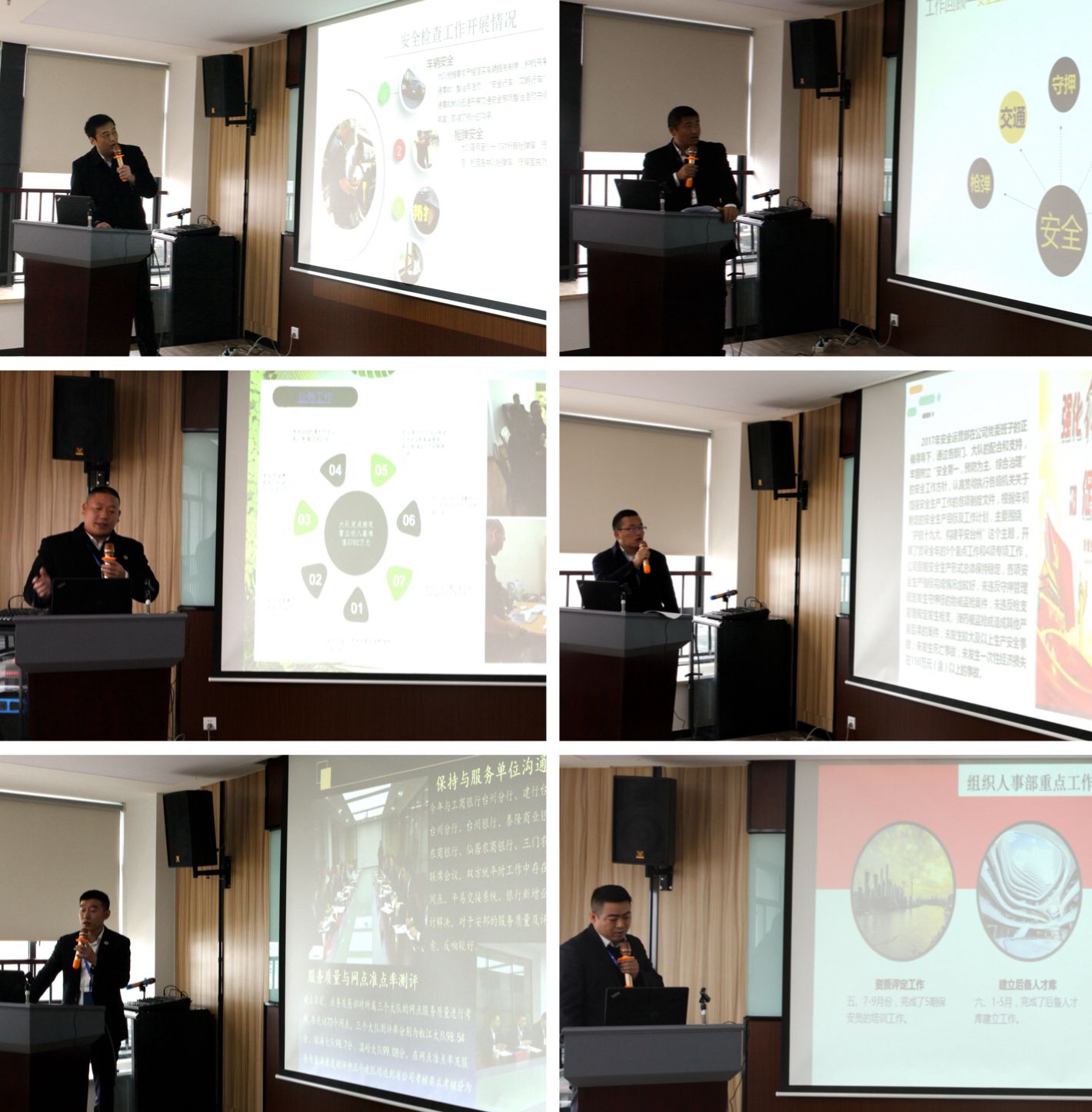 公司守押服务中心主任朱福科、副总经理徐晓丽、纪委书记周先湖分别对分管部门全年工作进行点评,并以问题为导向提出部门改进建议。台州市公安局治安支队陈岳千对公司2017年度工作给予高度肯定。