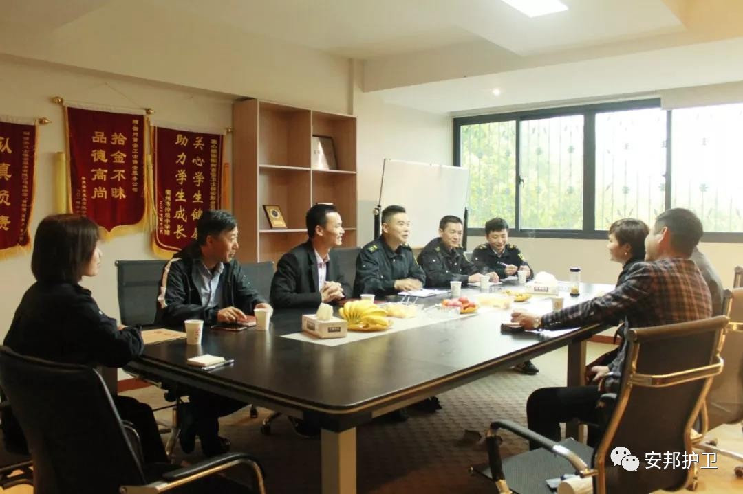 有限公司党委委员、总经理助理琚苏炳,安邦保安服务公司总经理鲁家富一行前往衢州首安卫士保安服务有限公司进行业务交流。双方相互介绍了公司的发展现状、运营管理模式、保安队伍管理等情况,并就日常工作中遇到的困难和问题进行了沟通探讨,相互借鉴、学习,以寻求更好的解决方法,开创保安工作更加美好的未来。