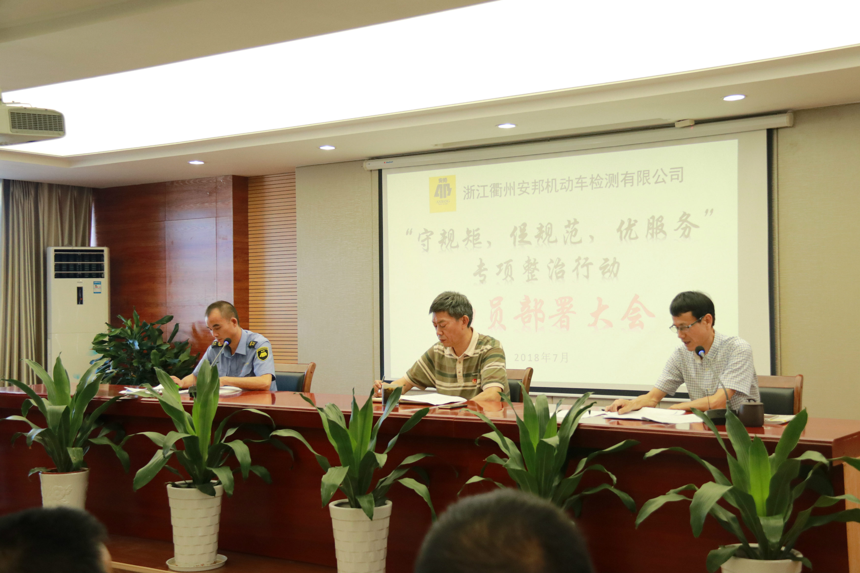 为进一步严肃工作纪律,强化服务意识,规范服务流程,提高浙江衢州安邦机动车检测有限公司的企业形象。近日,在公司二楼会议室召开了“守规矩、促规范、优服务”专项整治行动动员部署会。党委副书记、纪委书记郭启明,总经理助理李金生,安邦检测公司负责人吴震清及安邦检测公司全体人员共45人参加了会议。