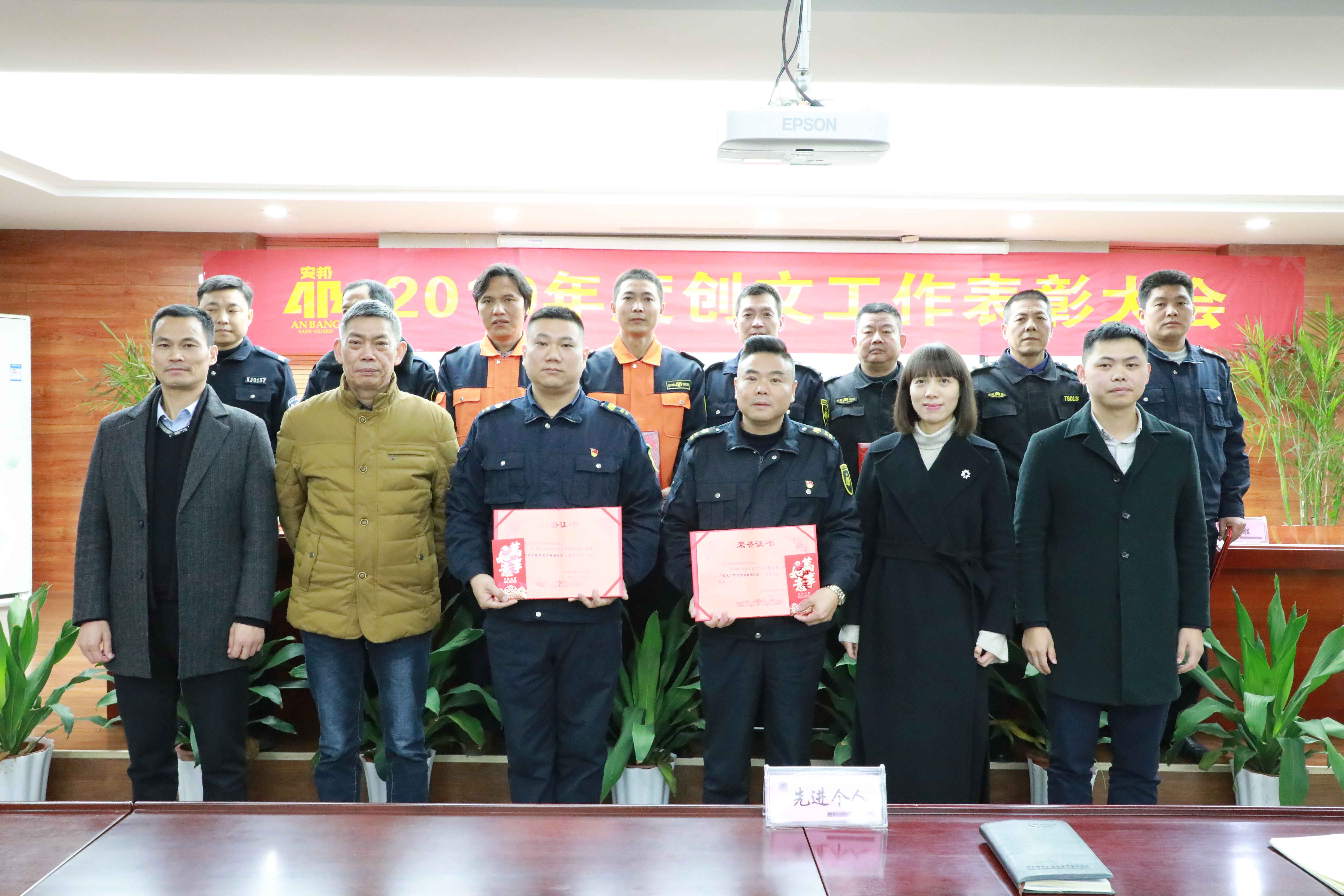 郑胜宣读了衢安邦〔2019〕47号《关于表彰2019年度创文工作先进集体和个人的通知》,公司领导先后为2019年度创文工作先进集体和个人颁发荣誉证书。