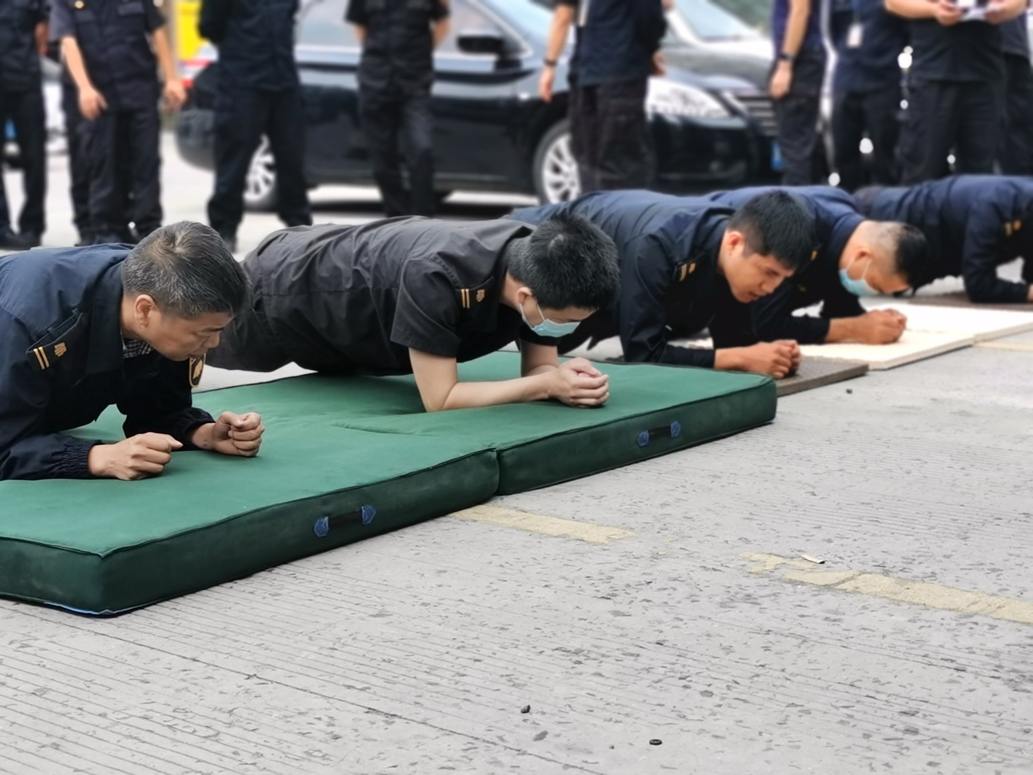 10月底,公司圆满完成2020年度“四严四高”全员考核工作。共1237名员工分批分组考核平板支撑、10*4折返跑、1000米、立定跳远、2分钟跳绳、枪支技能(枪支分解结合)、驾驶技能(拆装轮胎)和理论考试8个项目。
