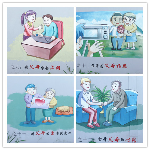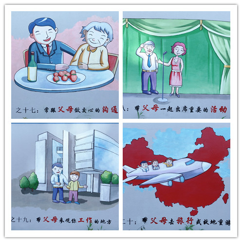 公司在基地围墙以纯手绘的方式呈现新“24孝”,营造知孝,懂孝,行孝的黑料网动态
