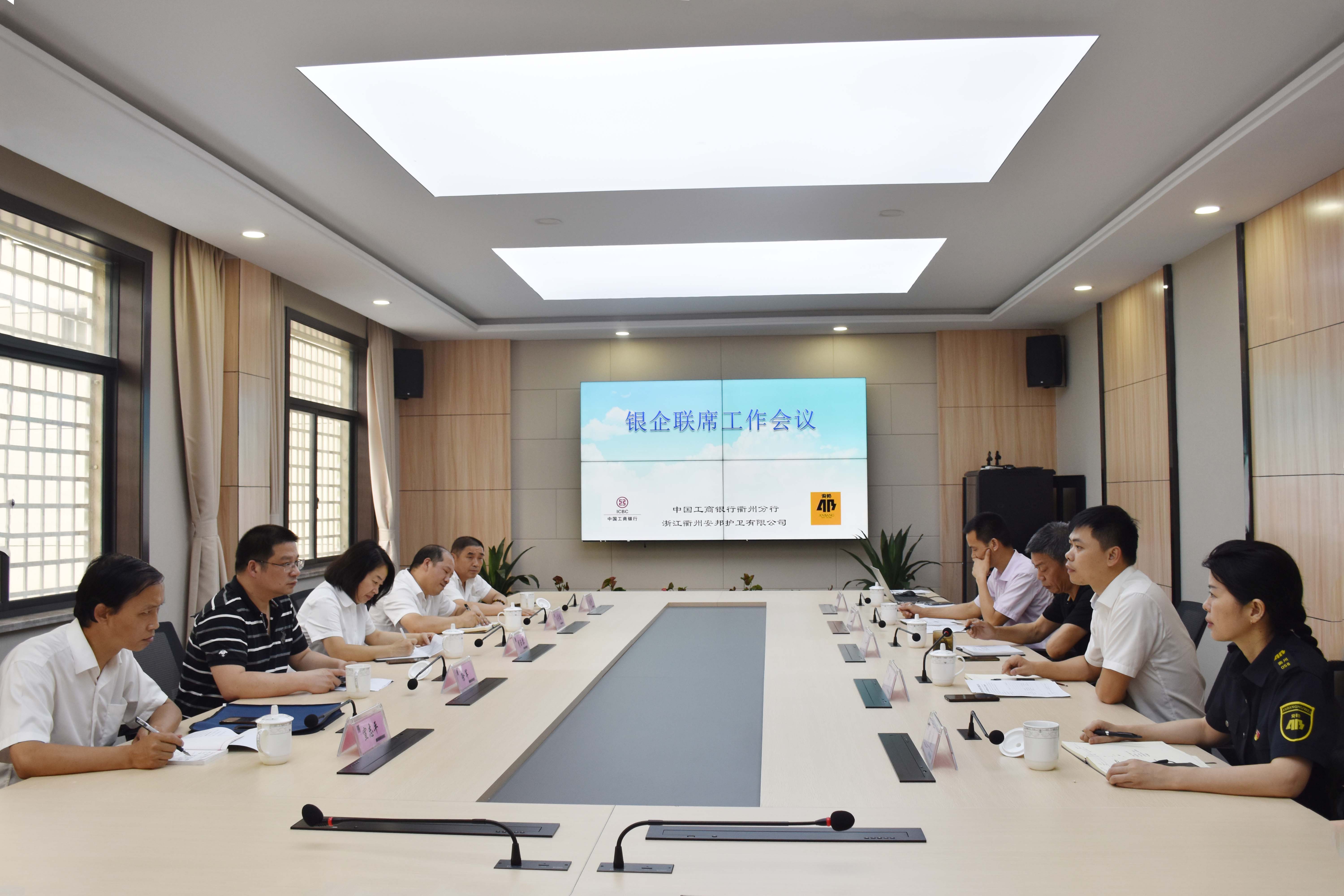 与中国工商银行衢州分行召开银企联席工作会议。公司党委副书记、纪委书记郭启明,党委委员、副总经理郑胜,党委委员、总经理助理琚苏炳,业务运营部副经理席霞,工商银行运管部总经理周玉琴,安保部总经理徐军、副总经理刘芳胜等参加了会议。