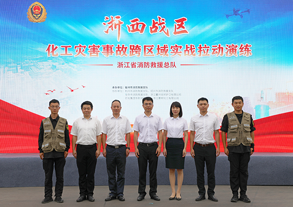 有限公司,杭州市、绍兴市、金华市消防救援支队,巨化集团专职消防大队,浙江豪邦化工有限公司协办的浙西战区化工灾害事故跨区域实战拉动演练在衢州智造新城举行。
