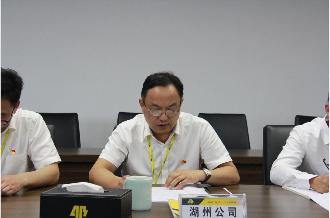 有限公司党委根据主题教育工作安排,于2019年9月12日开展“不忘初心、牢记使命”主题教育专题民主生活会。集团公司党委委员、副总经理骆金海、党委办公室副主任宋俊强、湖州公司党委班子全体成员参加了会议。