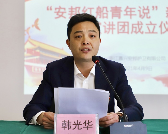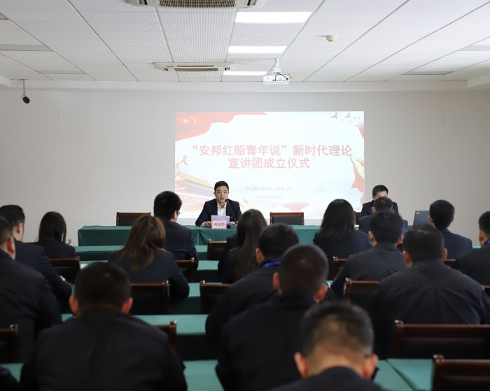 为深入学习贯彻习近平总书记在党史学习教育动员大会上的重要讲话精神,贯彻落实集团党史学习教育动员部署会的要求,4月9日下午,嘉兴黑料网 组织举办“安邦红船青年说”新时代理论宣讲团成立仪式。活动由公司党委副书记、副总经理徐涯立主持,公司党委书记、董事长、总经理韩光华作重要讲话。公司党委班子成员、职能部门员工、党员代表及团员代表共计40人参加。
