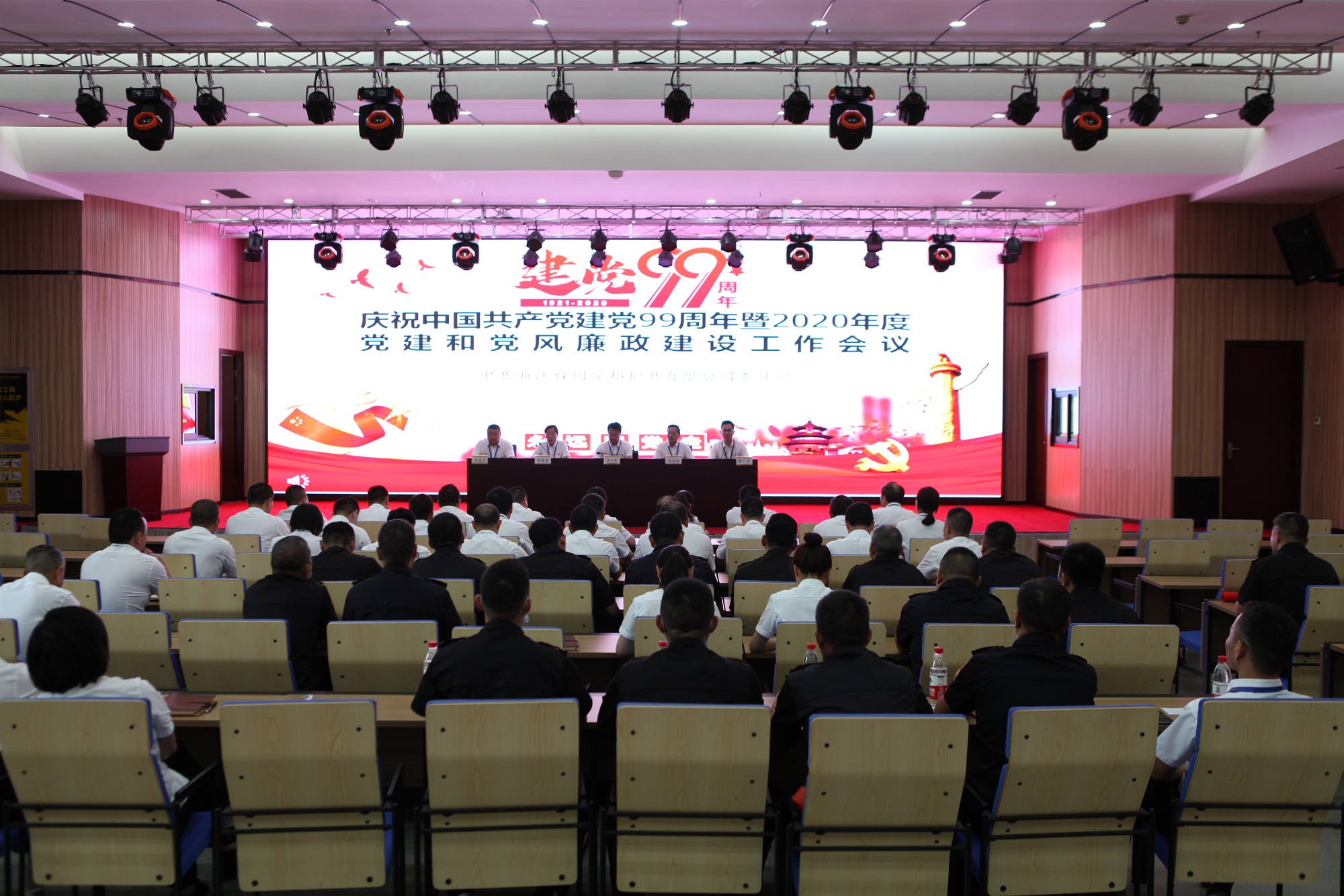 72日,公司召开庆祝建党99周年暨2020年度党建和党风廉政建设工作会议,共同庆祝党的生日,公司党委班子成员、副职以上中层干部,全体党员参加会议。