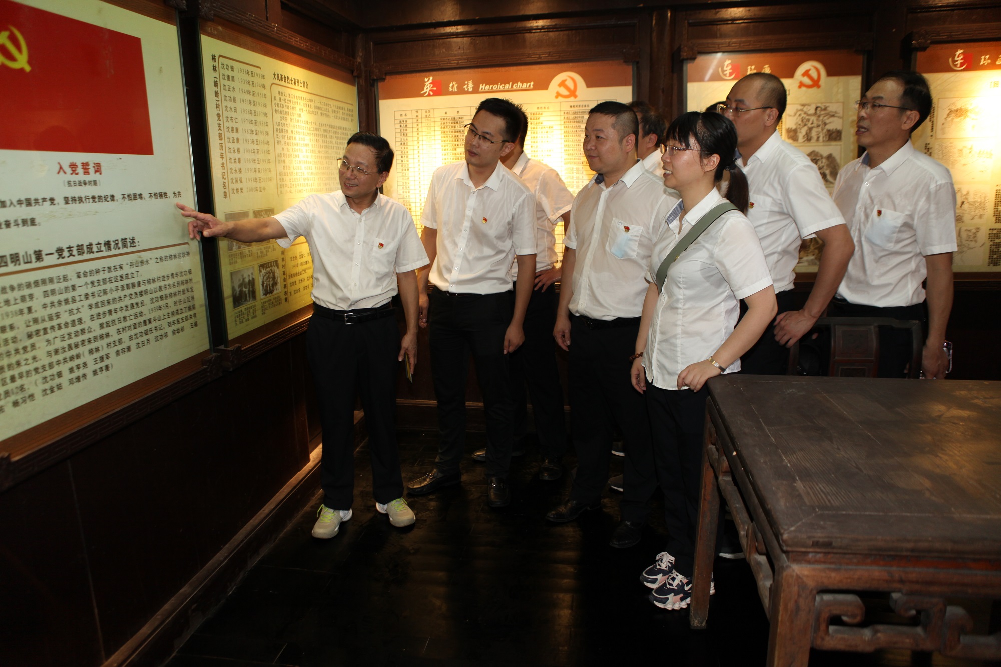 在浙东根据地旧址群,大家先后参观了浙东区党委、浙东行政公署、浙东银行和《新浙东报》旧址,认真学习抗日战争和解放战争时期浙东广大军民的英勇事迹,仔细观看了革命珍贵文物、历史照片和资料,对根据地的组建、发展及革命活动情况有了更加深入的了解。通过边走、边听、边看、边想、边交流,大家感受到了生动的爱党爱国和群众路线教育。