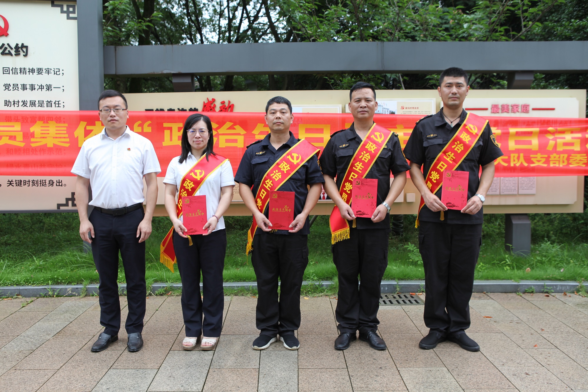 在横坎头村广场上,直属押运大队党支部开展了2020年第二季度党员政治生日活动。