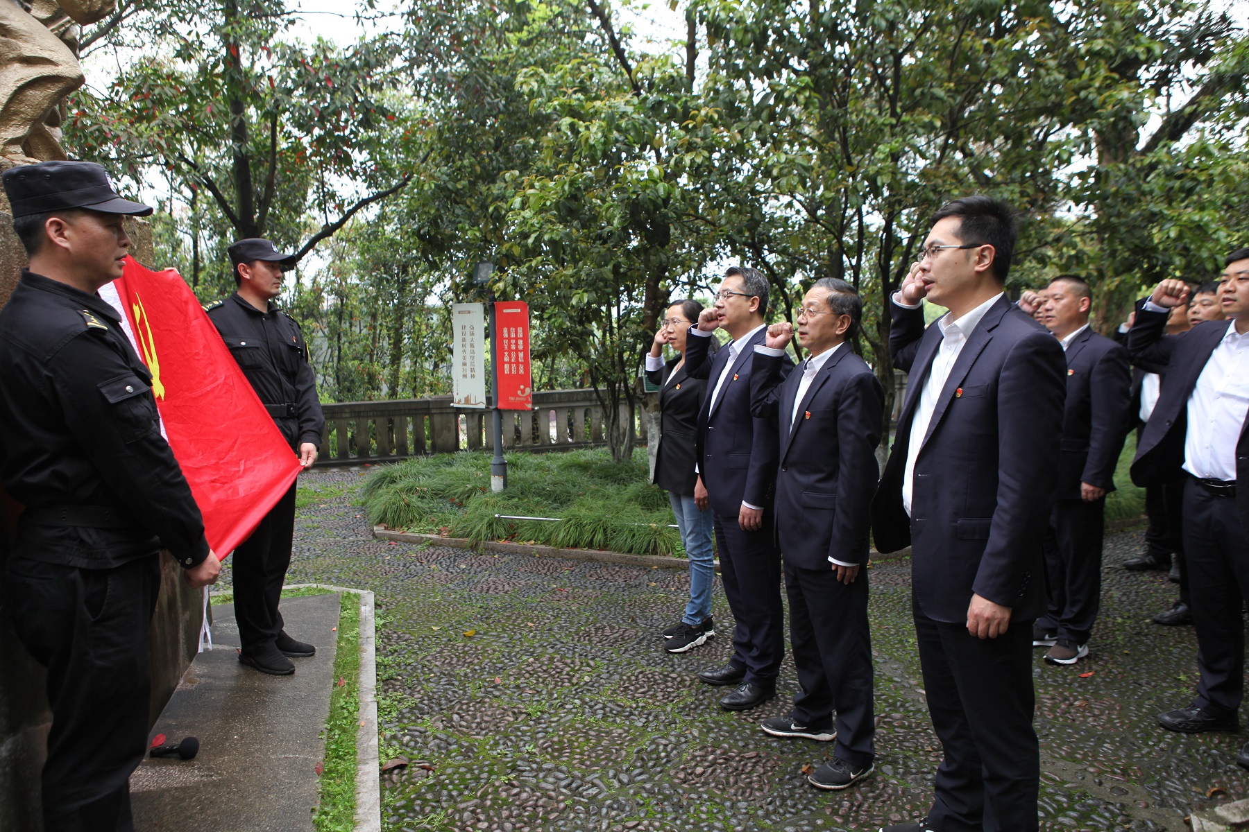 青山埋忠骨,史册载功勋。沿着236级台阶的烈士墓道拾级而上,全体党员整齐列队,在烈士纪念碑前庄严肃穆,敬献花篮,行三鞠躬礼,面对鲜红的党旗重温入党誓词,用简洁庄重的仪式,缅怀454位长眠于此的革命先烈。