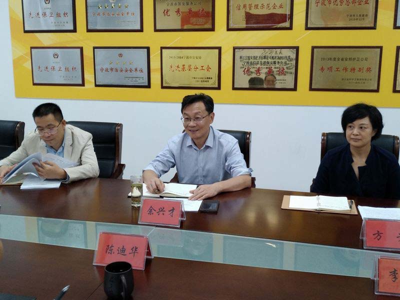 在认真听取汇报及实地调研后,余书记对公司党建工作给予了充分肯定。通过调研,公司党建工作基础扎实,基层党建工作有一定的特色。同时就做好党建工作提出三点要求:一是公司党委要高度重视党建工作,充分发挥党组织在公司业务发展过程中的政治核心作用;二是要加强基层党支部的建设,充分发挥基层党员干部的积极性、创造力;三是要创建党支部党建品牌特色,在工作中发挥引领作用,为建设平安浙江作出应有的贡献。