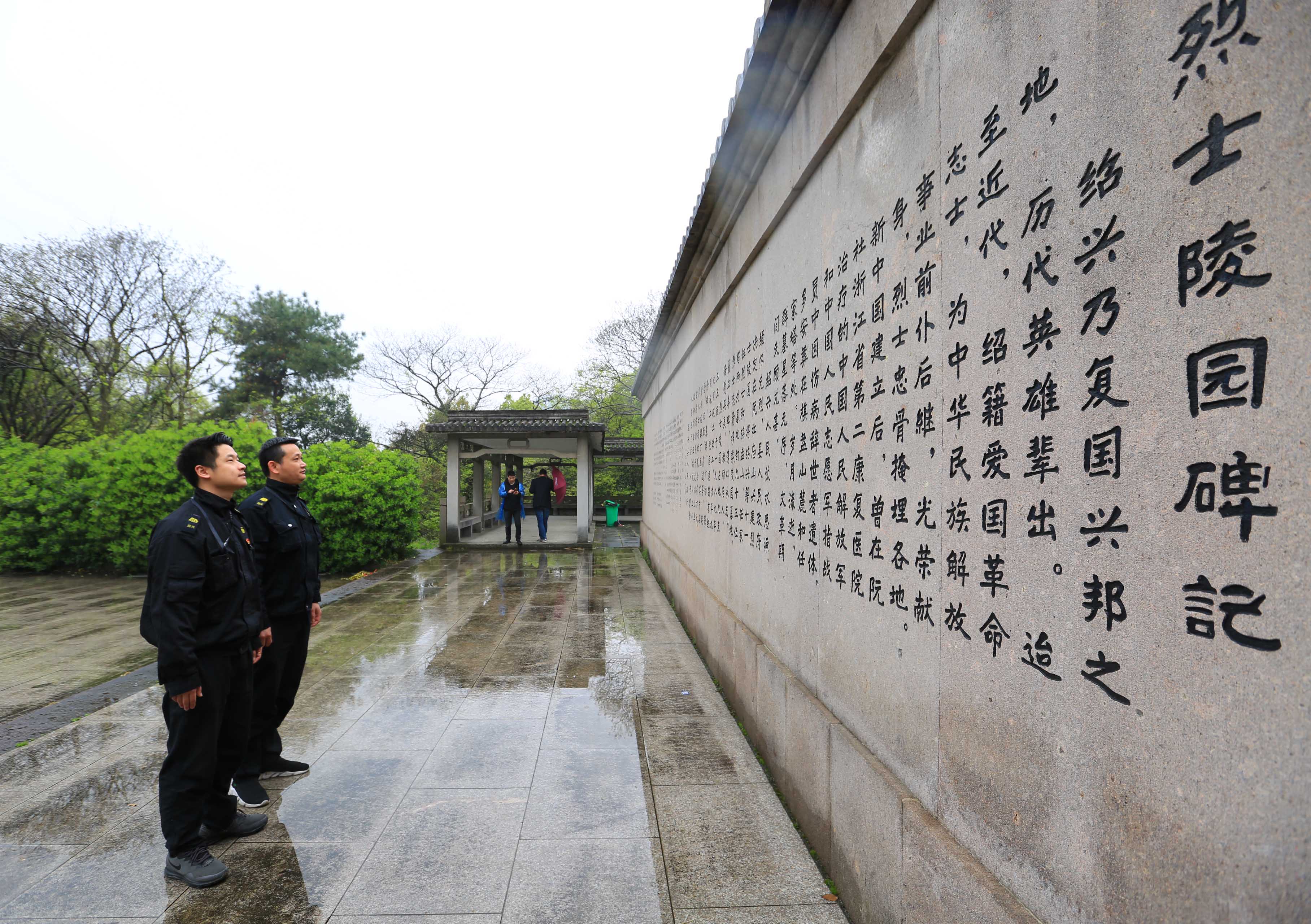 在绍兴市柯桥区烈士陵园内,阴云低垂,雨丝飘洒,气氛庄严肃穆。在国歌声中,全体人员冒雨敬献花篮、肃立并默哀三分钟,寄托对革命先烈的无限哀思。随后,全体人员依次在烈士墓前三鞠躬、敬献菊花、瞻仰烈士陵园,深切缅怀为民族解放和人民幸福而英勇献身的革命烈士。