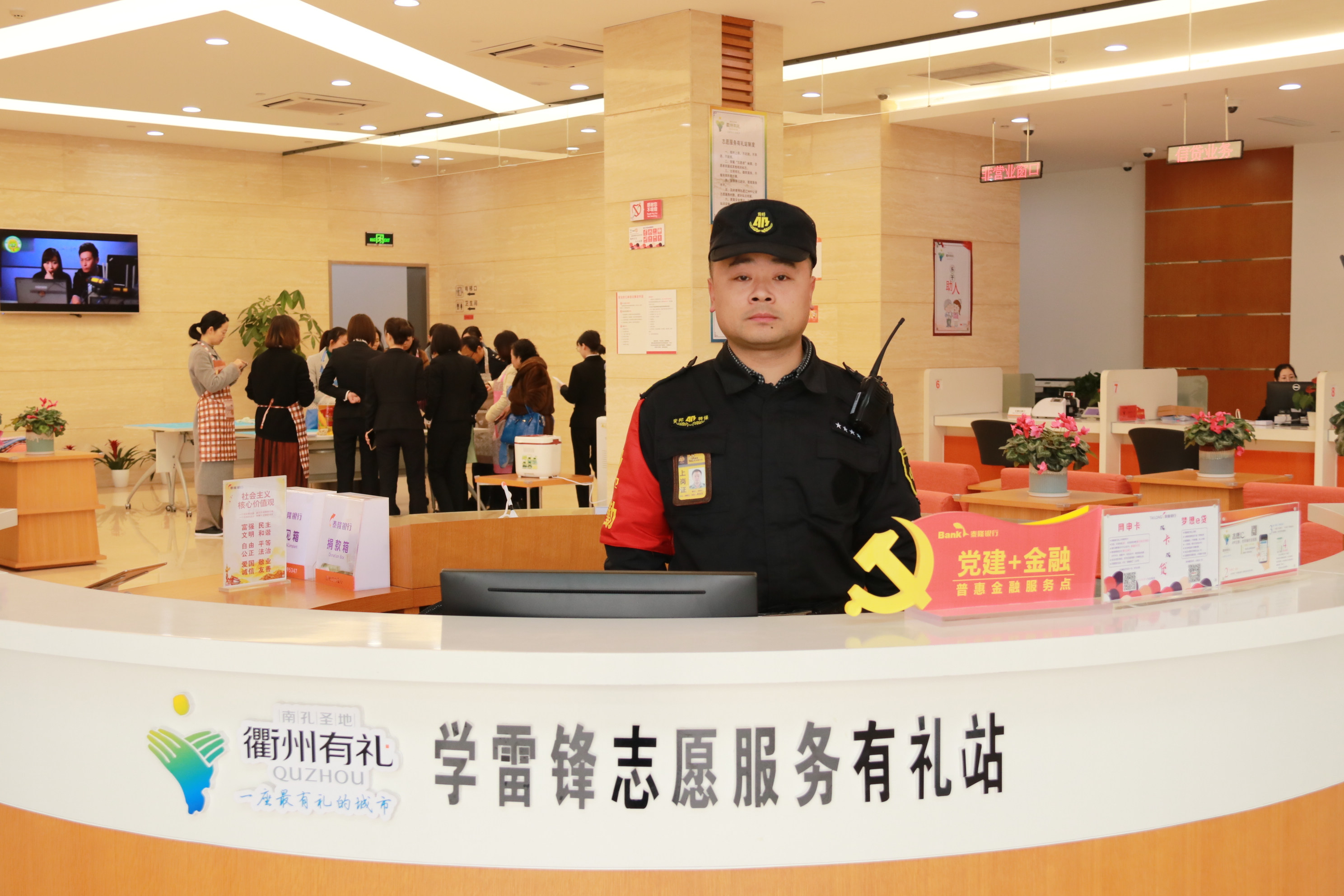 在日常值勤中他时刻保持良好的职业形象,积极关注营业场所动态,主动做好客户的首次业务分流工作,对于未取号停留在网点的客户,会主动上前询问客户的需求,防范可疑人员。