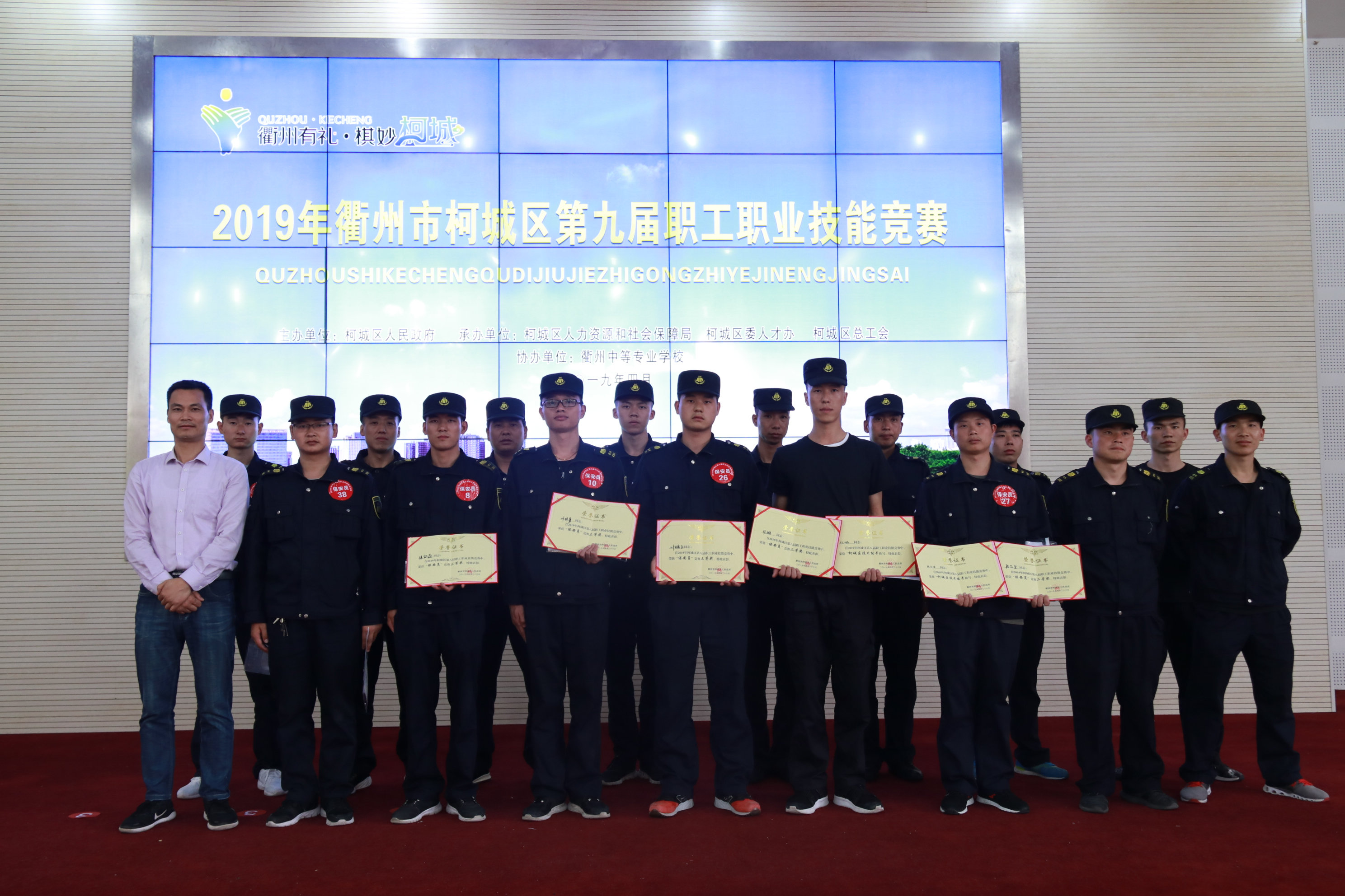 有限公司捷报频传——在保安员组竞赛的6个获奖名额中,衢安邦将其中5个名额揽入麾下。徐鹏、段志坚获二等奖,叶林勇、徐凯磊、叶鹏飞获三等奖,其中徐鹏、段志坚喜获“柯城区技术能手”荣誉称号。