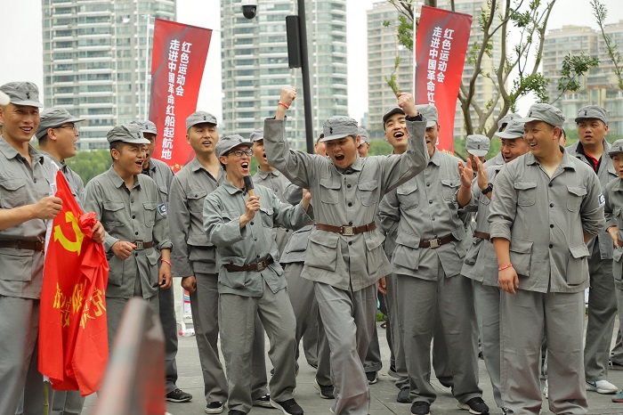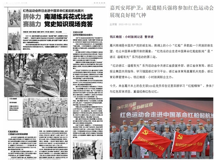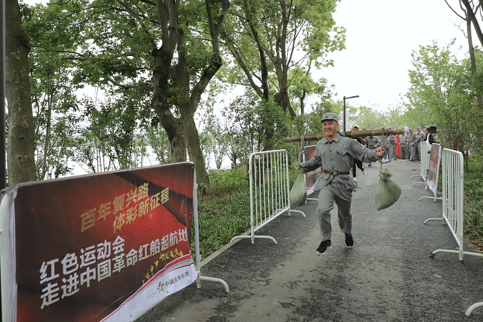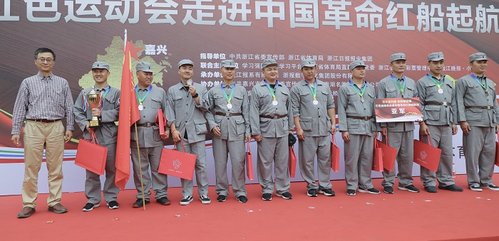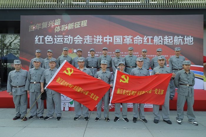 5月11日上午,“红动浙江·温暖有光”系列活动之一——“红色运动会走进中国革命红船起航地”在嘉兴南湖畔举办。来自嘉兴各行各业的30多个党支部参赛,共计300余人,用群众体育运动结合红色军体项目的方式,一起重温“红船精神”,参与一次特殊的主题党日活动。