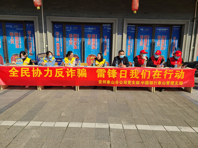 为进一步激发党建新活力,在“学雷锋纪念日”来临之际,宁波公司象山分公司党支部与中国银行象山支行综合管理部支部一起,开展“弘扬雷锋精神,参与反诈宣传志愿服务”活动。