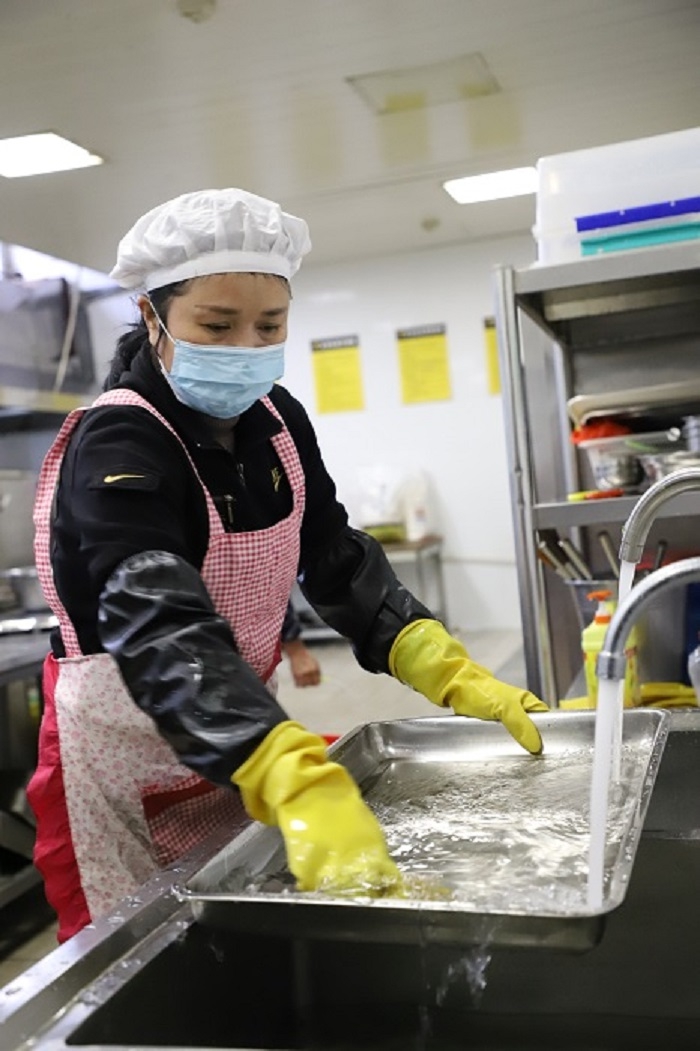 出生农村的她,对蔬菜、肉类等食材的新鲜度和质量有着天然的敏锐判断力,常常一眼就能看出来供应商送来的食材是否新鲜。对于发现以次充好、滥竽充数的现象,她坚决要求退货更换。为了保证餐具的卫生安全,她要求所有快餐盒都要消毒半小时,盛饭菜的容器在清洗之后都要放入蒸箱进行高温杀菌。