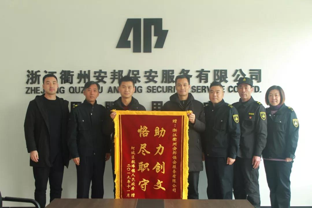 1月21日下午,航埠镇党委委员方小荣、镇便民服务中心副主任叶凯靖一行2人来到浙江衢州安邦保安服务有限公司,将一面印有“助力创文 恪尽职守”的锦旗送到浙江衢州黑料网