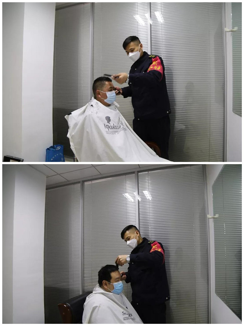 自疫情防控工作开展以来,杭州安邦铁军始终在抗“疫”一线坚守着,而铁军们头发、边幅急需修理...考虑到这一情况,公司党委副书记、工会主席马洪庆看在眼里、急在心里,2月10日晚,他从公司人才库搜索出一名“美发师”,三墩基地严文才,随即进行了联系。今天一大早,严文才从三墩基地赶赴滨康路基地,打开了他的“百宝箱”:充电推剪、剃刀、打薄剪等理发工具。
