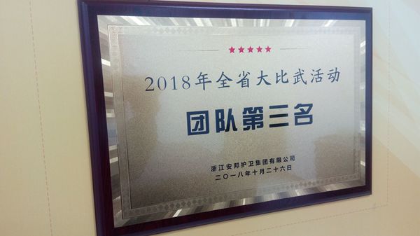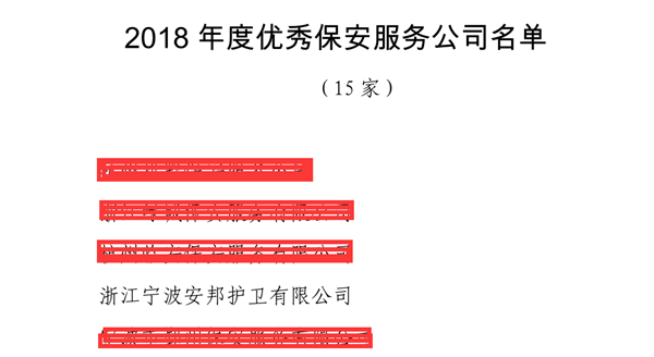2月22日,宁波安邦公司被宁波市保安协会表彰为2018年度保安服务企业信息先进集体,至此,在2018年,该公司先后喜获省保协“优秀保安服务公司”“省级平安单位”“先进保卫组织”等八项荣誉。