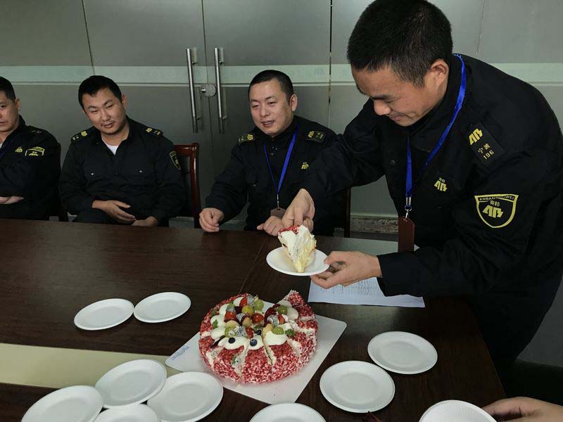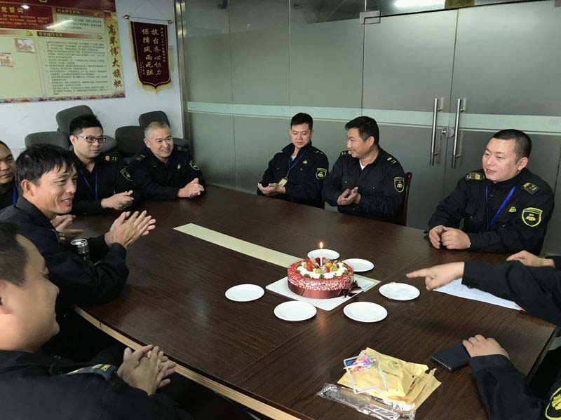 建设,坚持以人为本的理念,关心队员工作生活,为队员建立生日档案,生日提前准备精美的生日蛋糕,员工们颇感欣喜,“安邦公司的关怀让我们感受到大家庭的温暖”。看似小活动,却表达了大队对队员的关怀,体现了队员的人生价值,对提高队员的凝聚力、向心力,提高队员的工作积极性,不失为一良策,这也是提倡公司文化、实施人性化管理的一个举措。