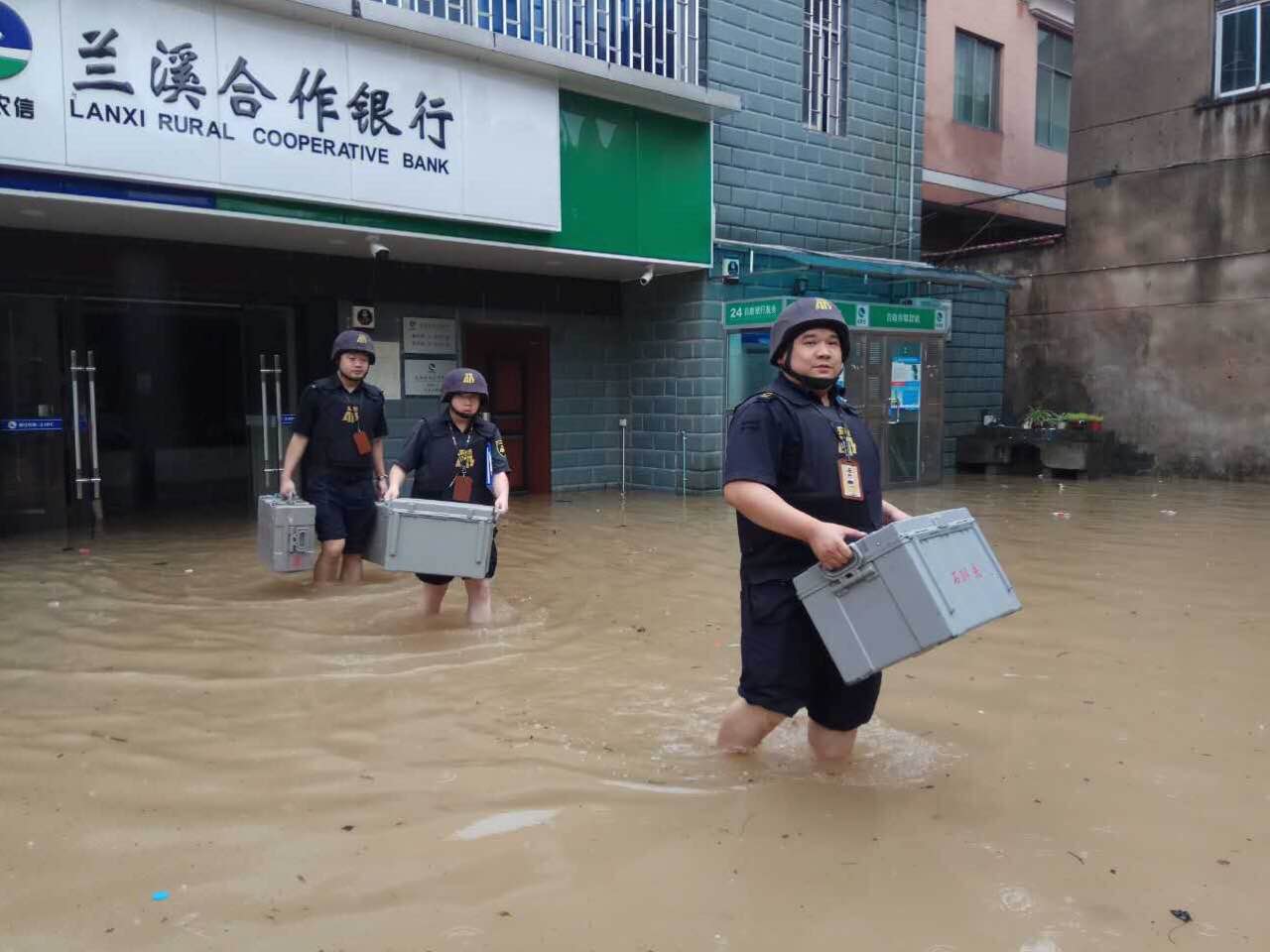 为避免因连续强降雨导致路面积水车辆无法通行而影响款箱交接,金华安邦公司江南大队兰溪合行中队主动与行方联系,并在行方同意下,提前将进水网点款箱接出,避免造成不必要的损失。目前,兰溪其他行正陆续提前接款中,人、车、款安全运行。(办公室、江南大队兰溪合行中队)