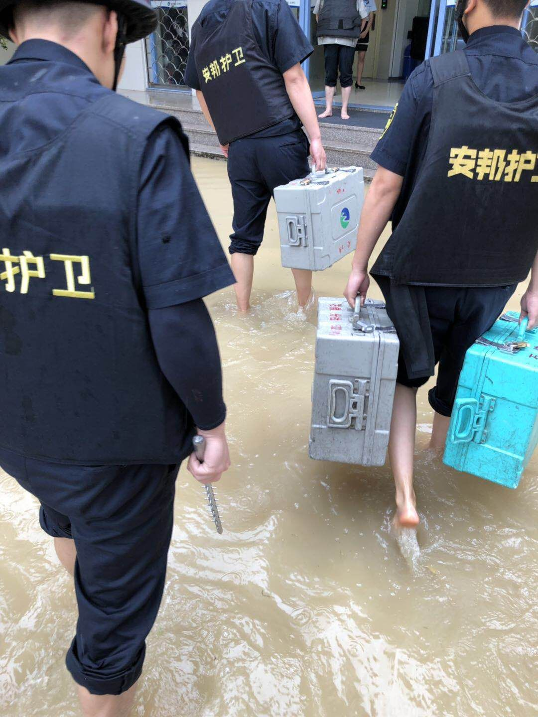 展现金融护卫铁军优良作风,暴雨天气也处处闪动着他们坚守、奋战的身影。