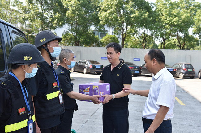 烈日炎炎,热浪滚滚。连日来的高温天气,考验着奋战在一线职工们的同时,也牵动着上级工会领导的心。为做好防暑降温工作,确保生产安全和广大职工平安度夏,7月26日,庄桥街道总工会主席汪兆云一行专程来宁波公司开展“夏送清凉”活动,为奋战在一线的职工送去饮料、毛巾、防暑药物等慰问品,为职工们送来一缕清凉,献上一份诚挚的关怀。
