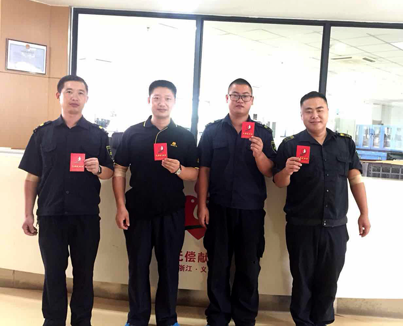 7月30日上午,金华安邦公司义乌守押大队中行中队4名退伍军人,到义乌市中心血站献血1600毫升,用自己的满腔“热血”迎接“八一”建军节。